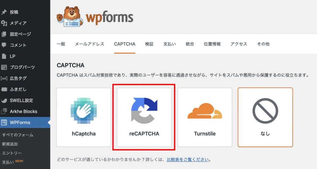 コンタクトフォームのスパム対策:SWELLでの推奨コンタクトフォーム「WPForms」使用