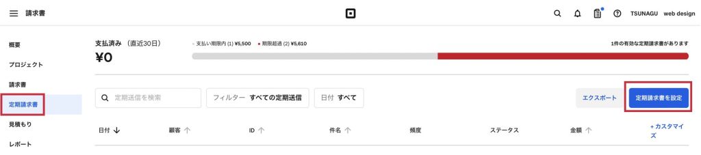 「定期請求書」タブの中の「定期請求書を設定」をクリック。